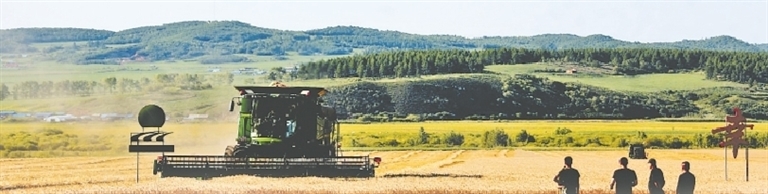 近日,在北大荒集團查哈陽農場有限公司金星管理區的小麥地塊,一臺大型收獲機車穿梭在金黃的麥田中,又是一年小麥收獲時。