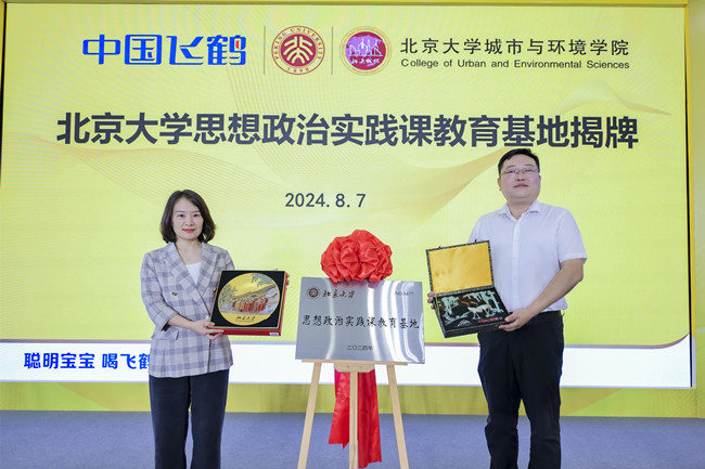 飛鶴乳業黨委副書記李玉蘋與北京大學城環學院副書記金鑫共同為北京大學思想政治實踐課教育基地揭牌