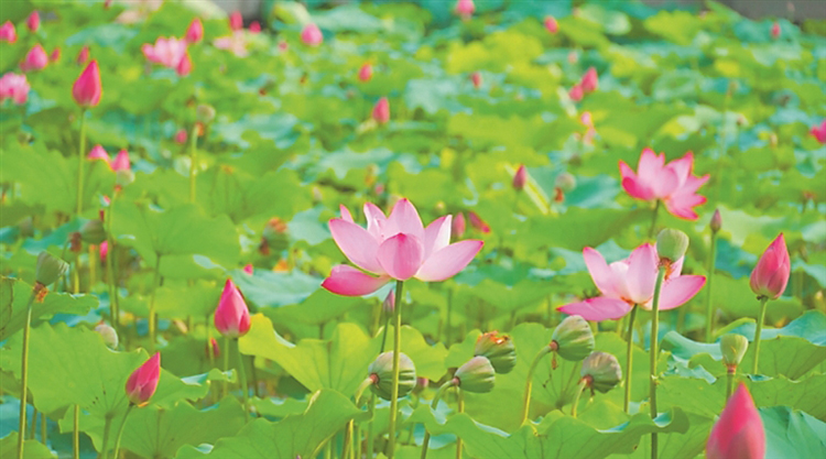 在北大荒集團八五九農(nóng)場有限公司灌渠附近,眾人發(fā)現(xiàn)了一片美若仙境的荷花泡,粉色的花朵連成一片,遠遠望去燦若朝霞,香味彌漫周圍。荷花池中,綠葉如蓋,朵朵荷花從中脫穎而出,花瓣層層疊疊,錯落有致,宛如精心雕琢的藝術(shù)品,每一朵都蘊含著大自然的鬼斧神工。