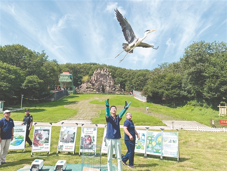 蒼鷺放飛現(xiàn)場。本報記者 劉瑞攝