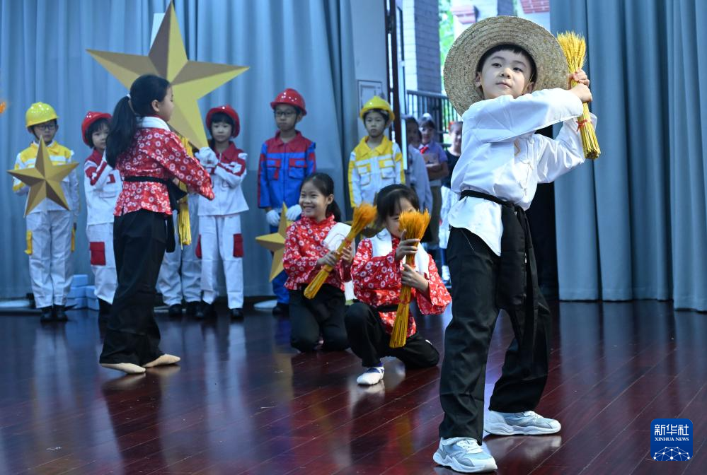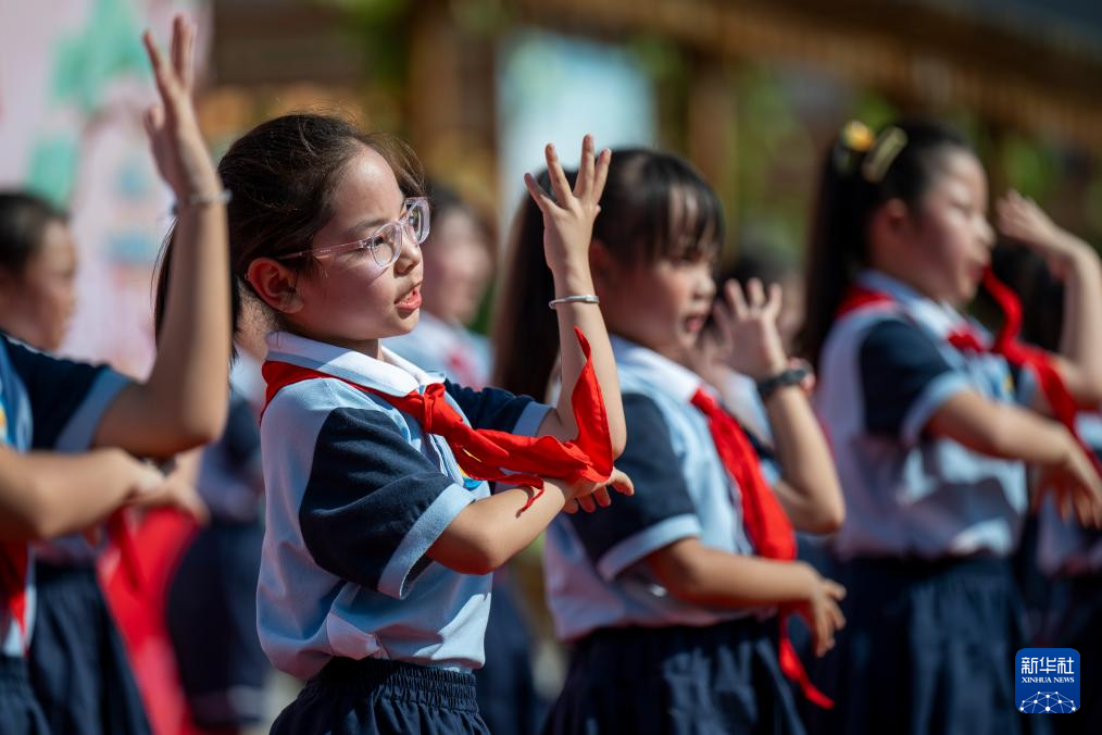 9月30日,湖北省黃石市沈家營小學的小朋友們在迎國慶活動上表演節目。新華社記者 伍志尊 攝