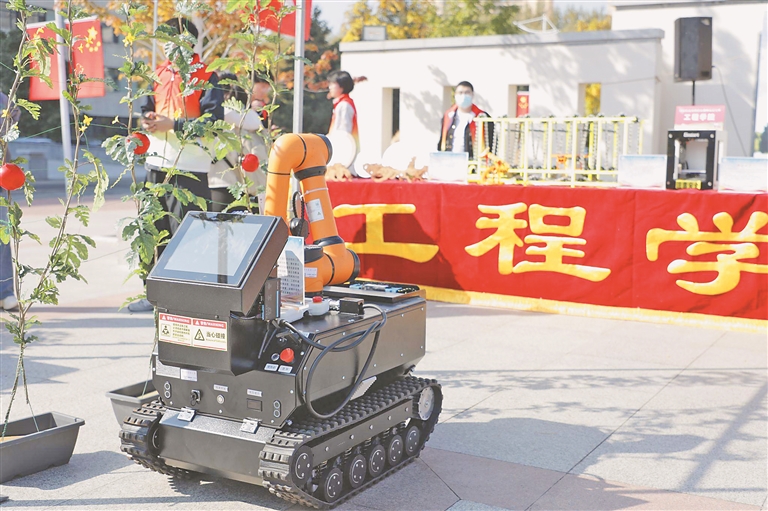 活動現場設有七大主題展區,通過展覽、體驗、品鑒等多種形式,讓師生親身感受耕讀文化的魅力。師生們紛紛走入展區,沉浸式體驗耕讀文化節展示項目。在智慧裝備體驗區,師生們觀看神奇的化學電源和化學溫度計等現場展示,體驗骨導通訊眼鏡等裝備;在食品體驗區,師生們品嘗果蔬、酸奶、肉類食品等;在校友企業體驗區,師生們聆聽返校校友秉承“三農”情懷,矢志以科技報國的學農為農故事;在花藝茶藝體驗區,師生們在花香四溢中感受插花藝術的魅力。