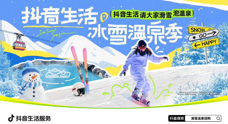 隨著全國各地降溫,“冰雪經濟”逐漸升溫。10月22日至12月22日,抖音生活服務發起“抖音生活冰雪溫泉季”活動,重點圍繞哈爾濱、長春、沈陽等城市,聯動政府、明星達人、商家線上推介當地冬季文旅資源,聚合物美價優的冬季吃喝玩樂商品;線下打造雪人城市生活圈、抖音生活市集等,吸引用戶出游打卡,激發冰雪消費熱情,助力冰雪城市出圈。