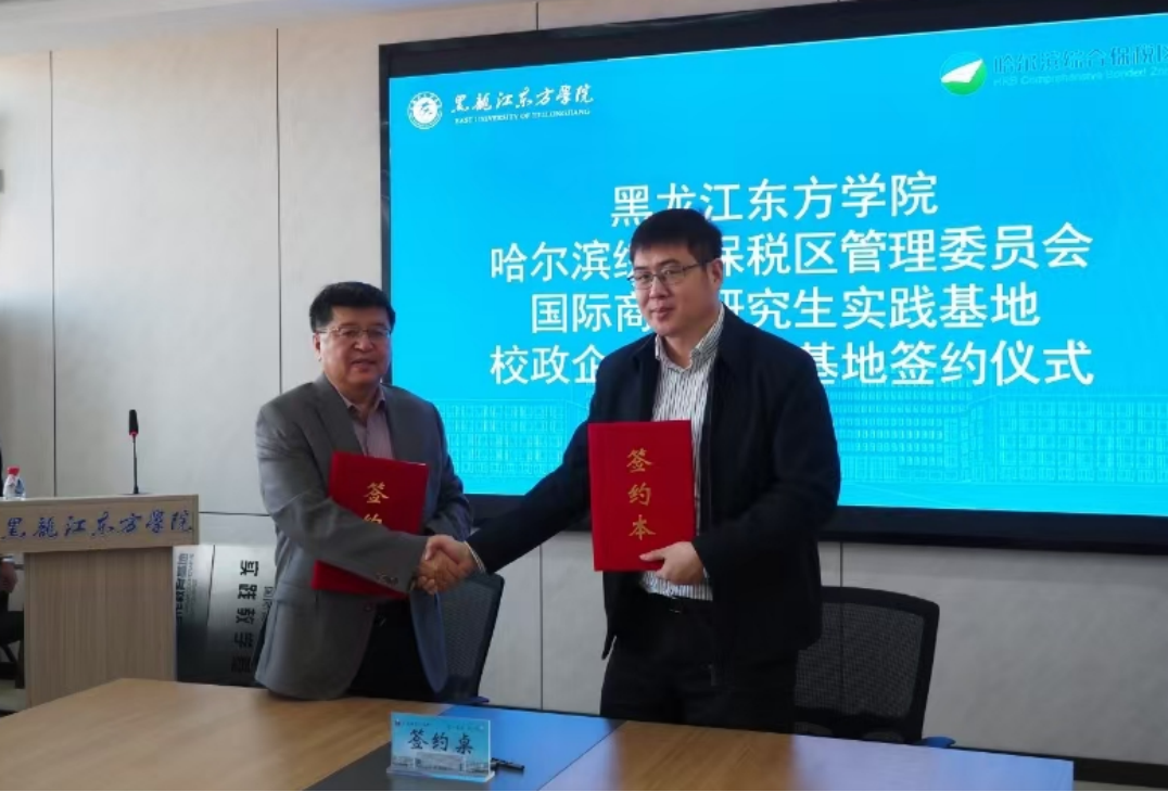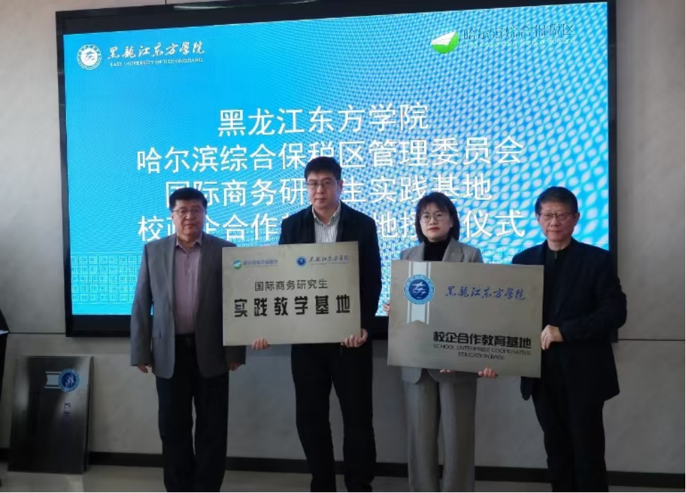 黑龍江經濟網訊(記者李凌雪)11月20日,哈爾濱綜合保稅區與黑龍江東方學院舉行校政企產教研發展戰略合作協議簽約授牌儀式。哈爾濱綜合保稅區副主任張旭與黑龍江東方學院副校長程延江共同為國際商務研究生實踐基地、校企合作教育基地授牌并簽署合作協議。