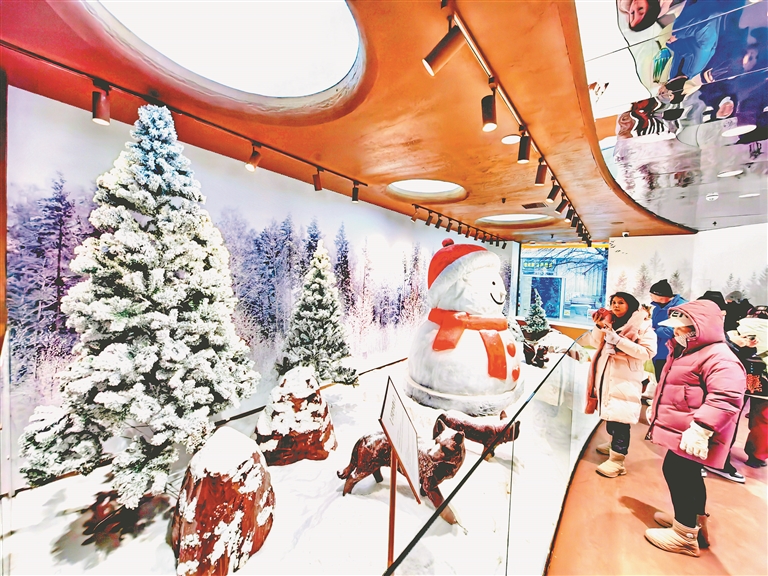 5日,哈爾濱市道里區中央大街上的巧克力博物館內,許多游客在打卡拍照。走進館內,便可以聞到一股濃濃的巧克力香味。