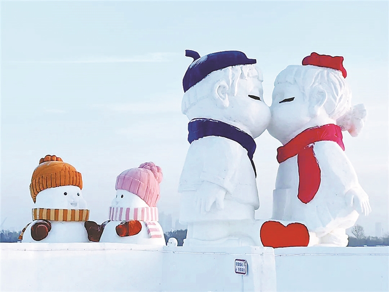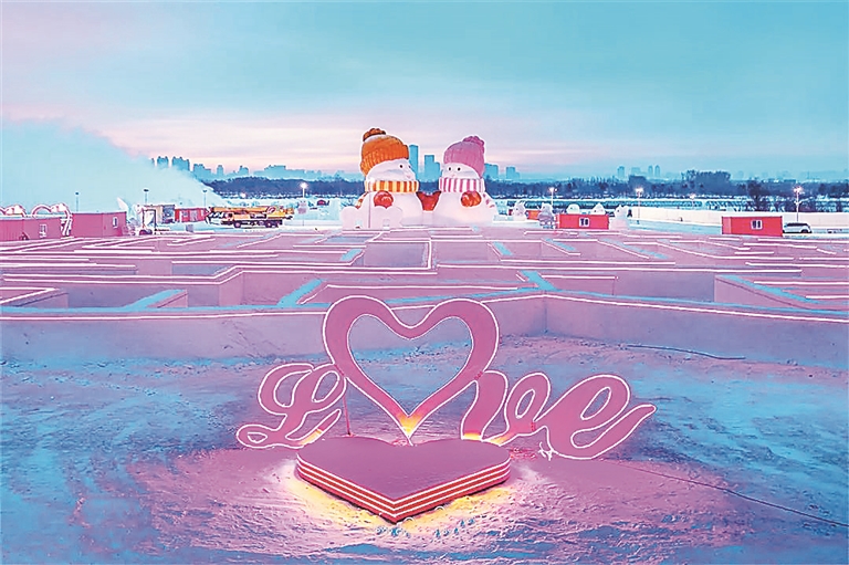 日前,坐落于哈爾濱大劇院西南江面的“爾濱之心歡樂島”開園。這是一座以“愛”為名設計建造的冰雪主題樂園,總面積約60萬平方米,共有56處心形景觀,還有“冰封玫瑰”和大雪人,“島”內愛意滿滿,吸引了不少游客前來打卡拍照。