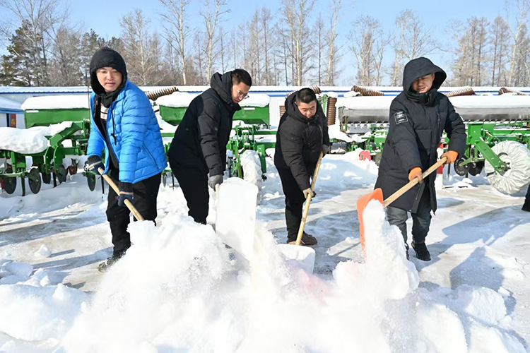 “眼下天氣逐漸回暖,為了避免氣溫上升造成積雪融化而形成冰層,影響后續工作,我們采取鏟車清雪、人工清邊的措施,確保將農具場積雪徹底清理干凈,為農機具檢修提供良好環境。”管理區工作人員說。