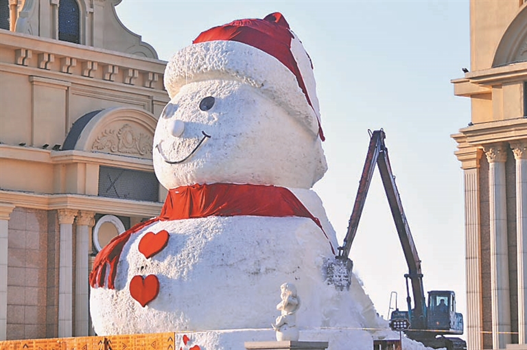 本報24日訊(記者 馬智博)24日,位于哈爾濱市道里區群力音樂公園的“網紅大雪人”開啟“年假模式”,再次與市民、游客說“再見”。