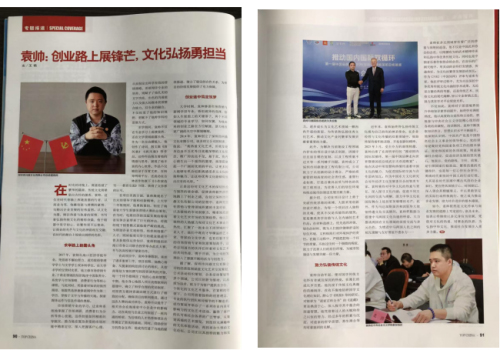 近日,我省籍企業家袁帥個人專訪《袁帥:創業路上展鋒芒,文化弘揚勇擔當》榮登知名雜志《中華英才》。
