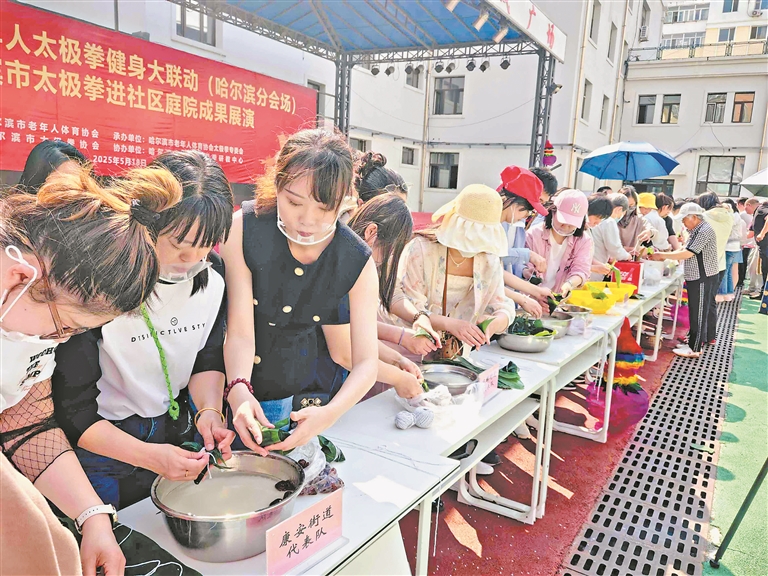 5月27日,在端午節即將來臨之際,一場別開生面的包粽子大賽在哈爾濱市道里區撫順社區舉行。現場粽葉飄香,一片歡聲笑語。