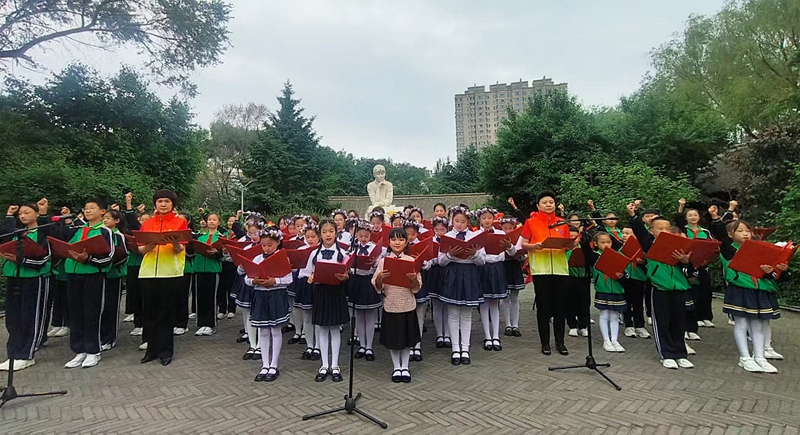 活動現場,愛樂男聲合唱團與哈爾濱市少兒藝術團聯袂演繹《呼蘭河的小姑娘》《夢中的呼蘭河》等改編自蕭紅作品的曲目,童聲清澈與男聲渾厚交織,勾勒出文學與音樂的百年共鳴。原黑龍江廣播電視臺播音指導肖霞朗誦《呼蘭河傳》經典片段,令現場觀眾仿佛置身于“祖父的后花園”。