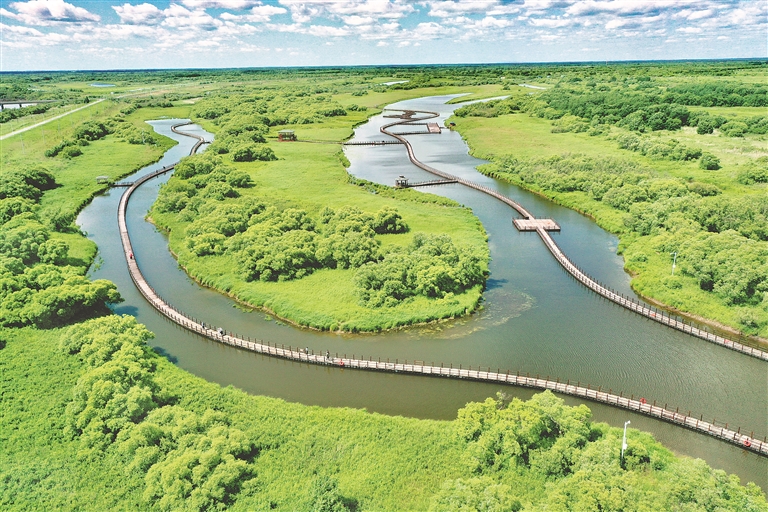 據了解,黑瞎子島濕地公園是國家4A級旅游景區。公園以濕地景觀為主體,以木棧道設置游覽路線,用最貼近自然的方式展現了黑瞎子島濕地所特有的原生態景觀。