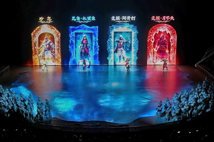 2.0版本《王的戰車》以北方部落的古老傳說為藍本,將傳統技藝與現代科技巧妙融合,既保留了傳統雜技的力量與驚險,又通過全息投影技術、天幕+地屏等科技手段賦予其全新的藝術表達。