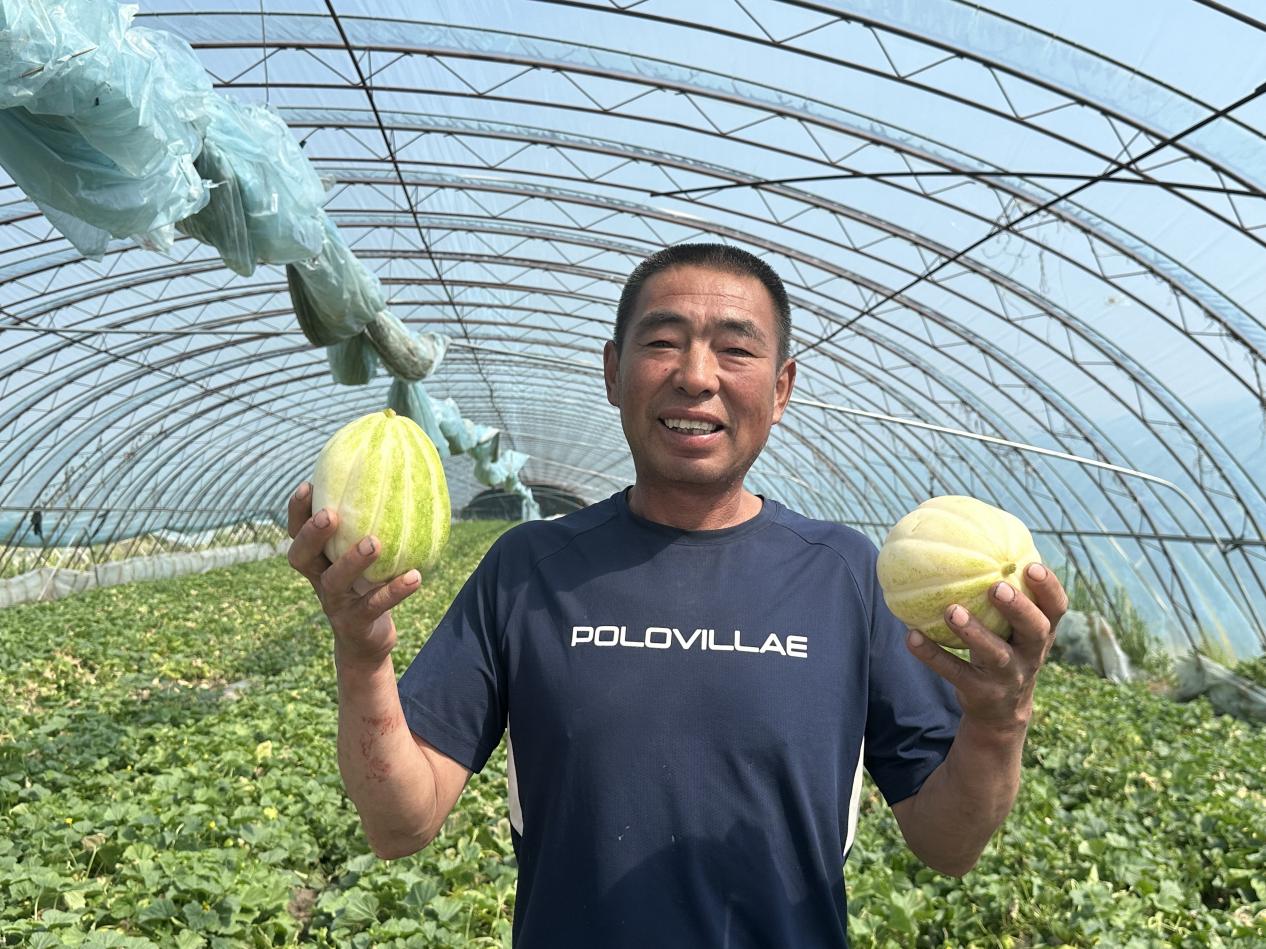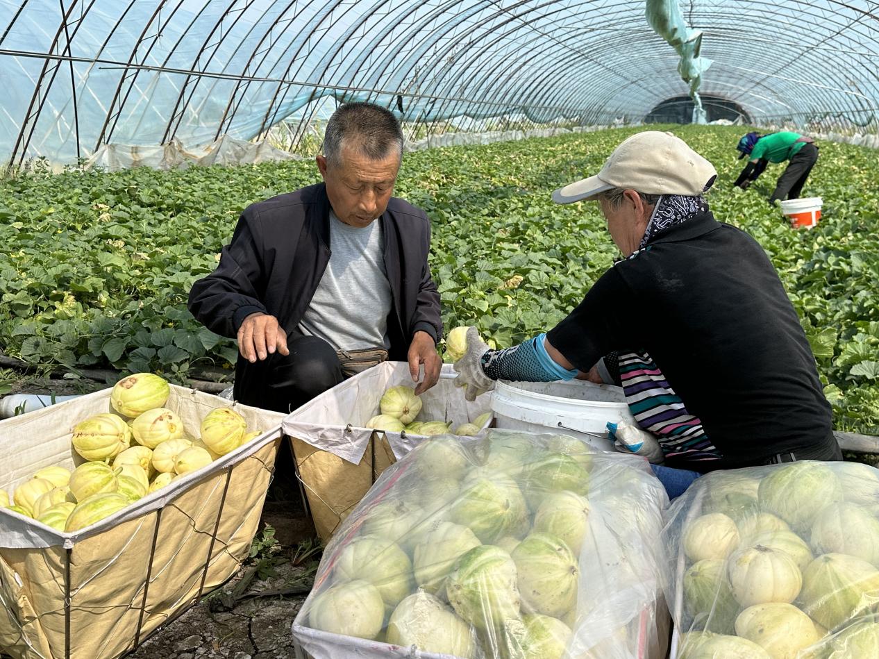 王占英有6年大棚種植經驗,這種采用獨特技術的種植方式保證了基地的牛奶香瓜品質和口感,目前售價穩定在6元/斤,基地“采摘+農超對接+零售”的銷售模式,不僅讓香瓜直供本地商超,還依托線上平臺將香瓜快遞至北京、深圳等一線城市。采購商李女士表示:“這里的香瓜甜度高,直接采摘的熟果口感好,在超市上架后一直很受歡迎。”