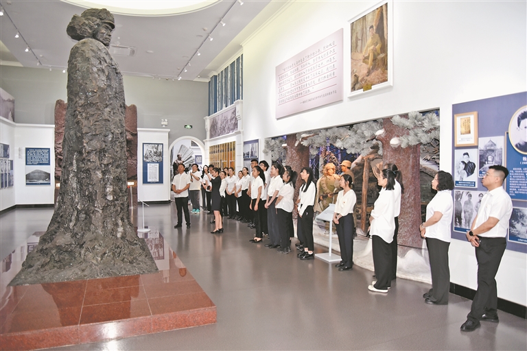 紀念館內,講解員深情朗誦《盧溝曉月》,將人們的思緒帶回“盧溝橋事變”那個山河破碎、狼煙四起的夜晚。隨后,大家跟隨講解員參觀了“黑土英魂陳列”,在一件件珍貴文物與歷史畫卷中重溫崢嶸歲月,感悟英烈精神。