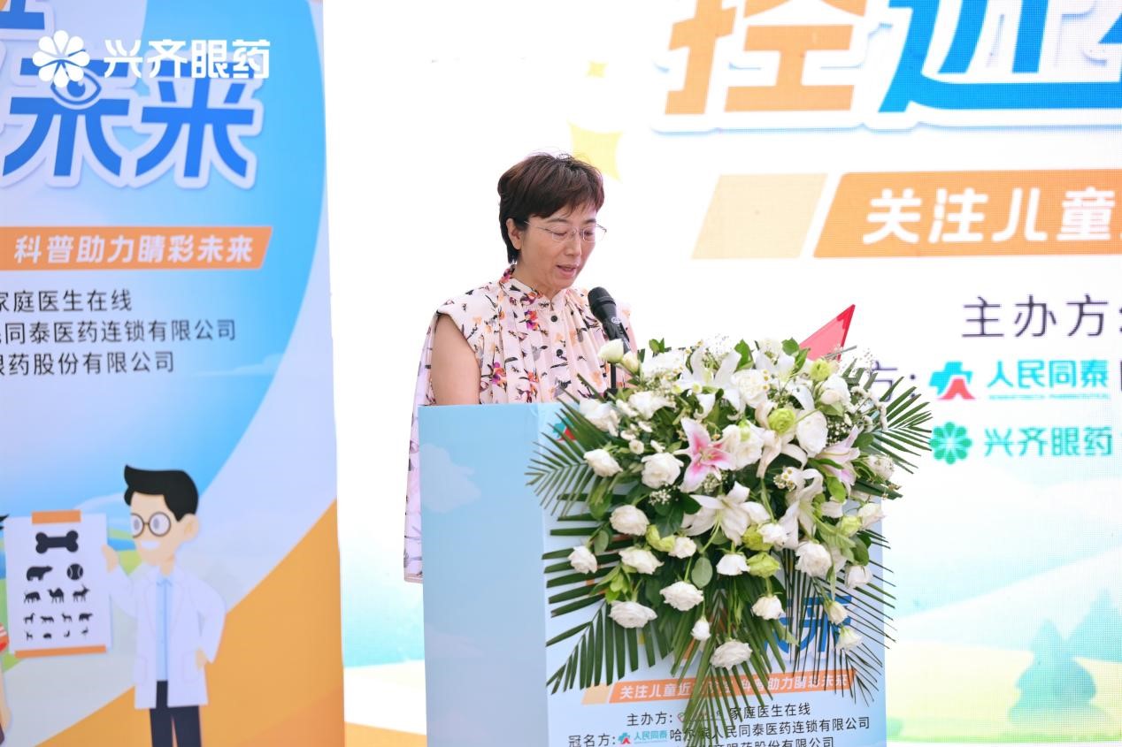 哈爾濱人民同泰醫(yī)藥連鎖有限公司副總經(jīng)理柴靜榮在致辭中直面近視低齡化、重度化挑戰(zhàn),強(qiáng)調(diào)企業(yè)踐行“打造卓越品牌、致力大眾健康”使命的責(zé)任擔(dān)當(dāng)。依托全省350余家社區(qū)門(mén)店網(wǎng)絡(luò)及線上線下一體化平臺(tái),全力支持公益視力檢測(cè)、科普講座等行動(dòng),并發(fā)揮執(zhí)業(yè)藥師團(tuán)隊(duì)專業(yè)力量,使科學(xué)近視防控理念精準(zhǔn)觸達(dá)家庭場(chǎng)景。