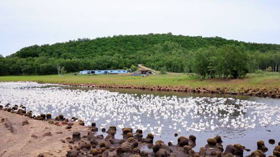 “我們這次的成功,關鍵在于聯合養殖的新模式:依托江邊林場、河口林場和那都里林場的地緣優勢和水草資源,三大林場‘攥指成拳’,資源互補,規模效應一下子就顯現出來了。”江邊林場黨支部副書記、場長唐樹志指著成群的大鵝介紹道,“95天的辛苦沒白費,這批鵝苗如今成了‘金疙瘩’,利用林下空間進行生態養殖,不僅節約了飼料成本,更鑄就了鵝肉的優良品質。”