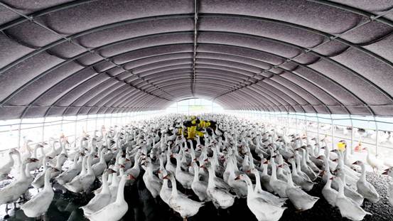 “得益于遠離污染源的天然環境,鵝群全天在林間自由活動,遵循自然習性自由覓食,而非人工配合飼料。這種養殖方式不僅讓鵝更健康,還通過鵝糞自然還田反哺土壤,實現了養殖與生態保護的雙贏。”大鵝養殖區工作人員一邊檢查大鵝健康狀況一邊介紹。