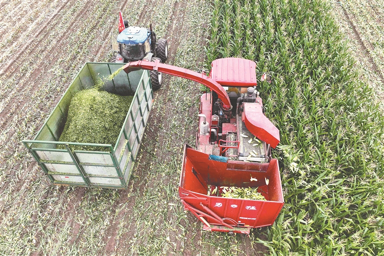 收割現場一派忙碌景象,農場調配的2臺青貯下棒一體收割機高效作業,實現莖穗同步收獲,效率較傳統模式提升3倍以上,10輛青貯運輸車與4輛糯玉米棒運輸車有序配合,日均完成150畝。作業中,12名黨員主動組成“助農突擊隊”,深入田壟撿拾玉米,確保顆粒歸倉。