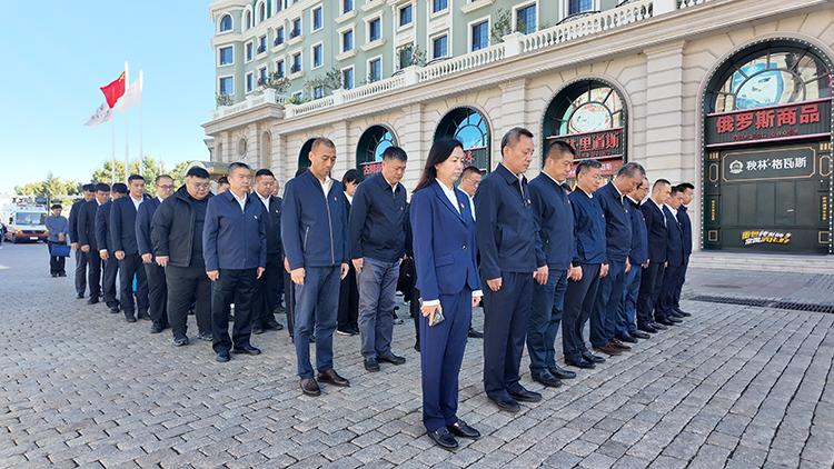 9時,警報聲劃破長空,全體人員莊嚴肅立,向在抗日戰爭中英勇犧牲的先烈們默哀,表達深切緬懷和崇高敬意。