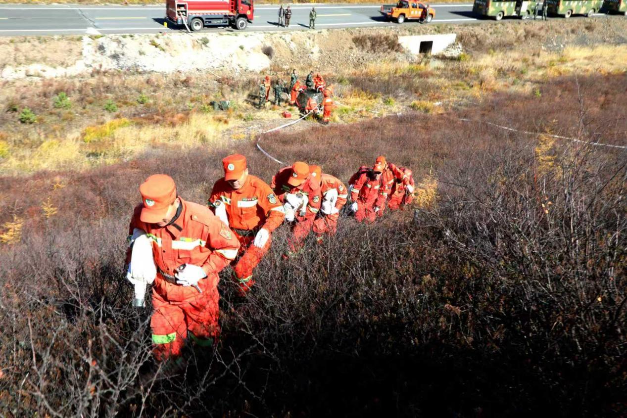 阿木爾林業局“以水滅火”中隊參加綜合演練,隊員攜帶水帶向“滅火點”挺進(王力 攝)