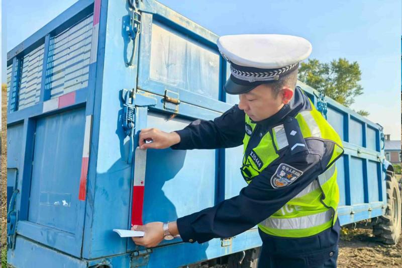 行動中,民警深入轄區(qū)國省縣道及鄉(xiāng)村田間地頭、農(nóng)戶家中,以農(nóng)用車、大型農(nóng)機(jī)具及三、四輪電動車等車輛為重點,精準(zhǔn)開展“地毯式”排查與服務(wù),針對車輛尾部反光標(biāo)識缺失、老化、污損等突出問題,民警現(xiàn)場為車輛免費粘貼反光標(biāo)識,確保“貼到位、貼規(guī)范”,保障每輛農(nóng)用車都能穿上“夜光防護(hù)衣”,最大限度消除夜間行車安全隱患。同時,通過發(fā)放宣傳資料、面對面講解和以案說法等形式,精準(zhǔn)宣講粘貼反光標(biāo)識的安全防護(hù)作用及酒駕醉駕、無牌無證、農(nóng)機(jī)車違法載人、超員超載等行為的危害和嚴(yán)重后果,強(qiáng)化安全意識和守法意識,教育引導(dǎo)農(nóng)村群眾自覺遵守交通法規(guī),做到讓“車尾”亮起來、讓“安全”看得見,切實將安全隱患消滅在萌芽狀態(tài)。
