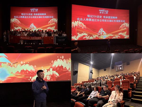 為深切緬懷革命先輩,大力弘揚愛國主義精神,進一步增強全體人員的歷史責任感與崗位擔當意識,合眾人壽黑龍江分公司黨支部組織開展“銘記731歷史,傳承愛國精神”紅色觀影活動。在黨支部書記的帶領下,分公司黨員、入黨積極分子、內勤全體員工及個險/銀保/收展渠道外勤黨員共同參與,通過觀看歷史題材影片《731》,重溫那段刻骨銘心的歷史。