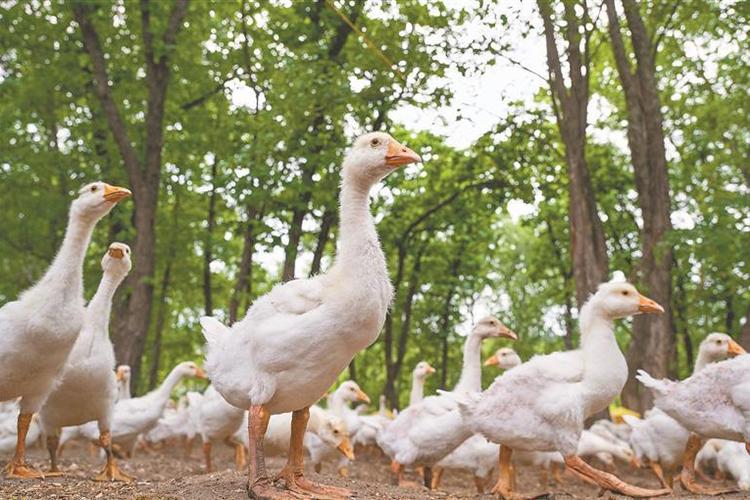 林下養鵝,“森林+”致富路子多。本報記者 唐海兵攝