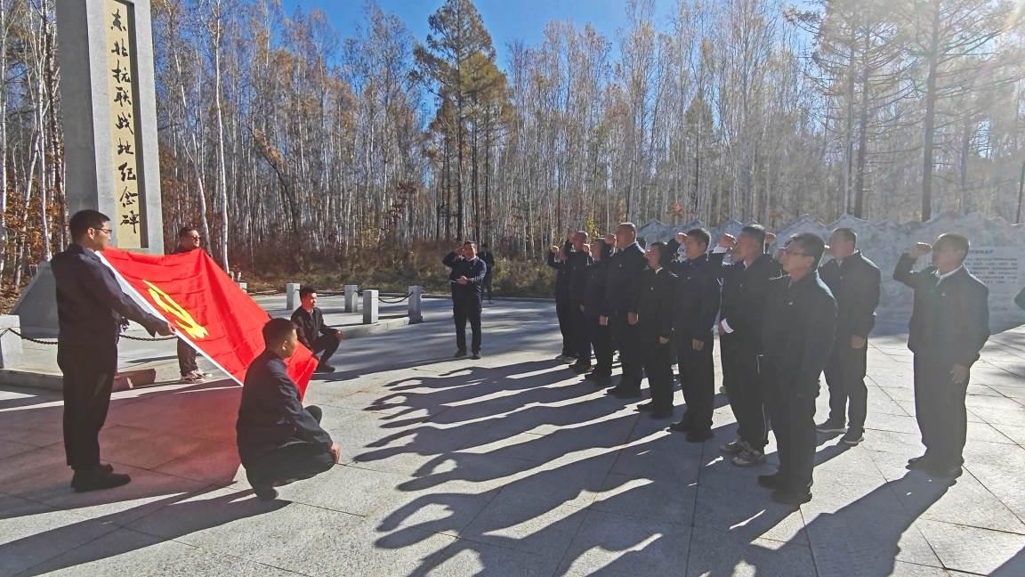 默哀結(jié)束后,重溫入黨誓詞環(huán)節(jié)將活動推向高潮。在領(lǐng)誓人的帶領(lǐng)下,全體黨員面向鮮紅的黨旗,舉起右拳,莊嚴(yán)宣讀入黨誓詞。鏗鏘有力的誓言回蕩在紀(jì)念碑前,不僅是對入黨初心的重溫,更是對使命擔(dān)當(dāng)?shù)脑俅纬兄Z,進(jìn)一步強(qiáng)化了黨員的身份意識與責(zé)任意識。