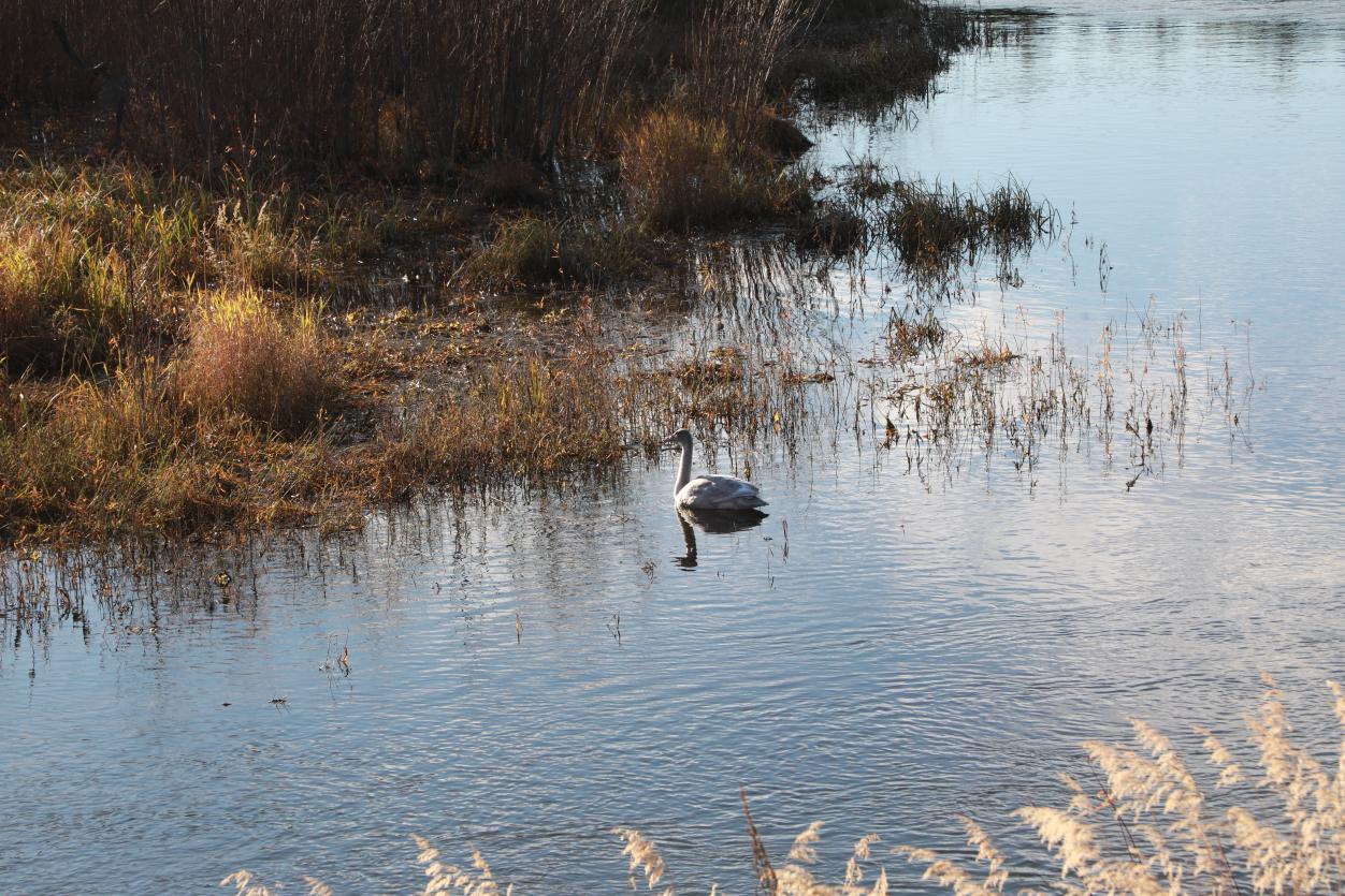 黑龍江經濟網訊(王力)時值深秋,正是候鳥南遷的關鍵時節。近日,在阿木爾林業局國家濕地公園的河畔,驚喜發現一只國家二級保護動物亞成體大天鵝在此駐足嬉戲,潔白的身影點綴在秋日濕地間,它時而將細長脖頸探入水中,專注覓食;時而收攏羽翼,在碧波間悠閑游動,為這片濕地增添了一抹靈動生機。
