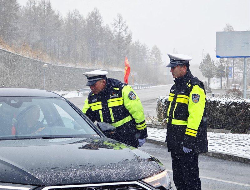黑龍江經濟網訊(王嘉琛)10月11日,大興安嶺地區新林區受冷空氣影響,迎來了今年秋冬季節的第一場雪。為有效應對惡劣天氣,新林區公安局交警大隊與各派出所、警務室多警聯動,充分發揮“交所合一”職能作用,全警頂風冒雪堅守一線,全力以赴投入保暢通、護平安、除隱患各項工作。