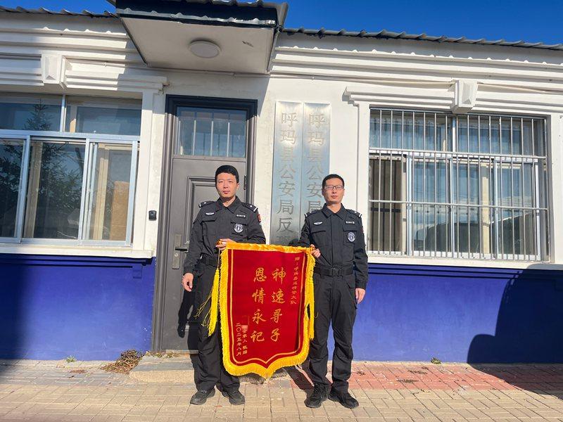 黑龍江經濟網訊(婁暢)10月8日,呼瑪縣公安局反恐與巡特警大隊收到了一份來自湖南的特殊快遞——一面印著“神速尋子 恩情永記”的錦旗。