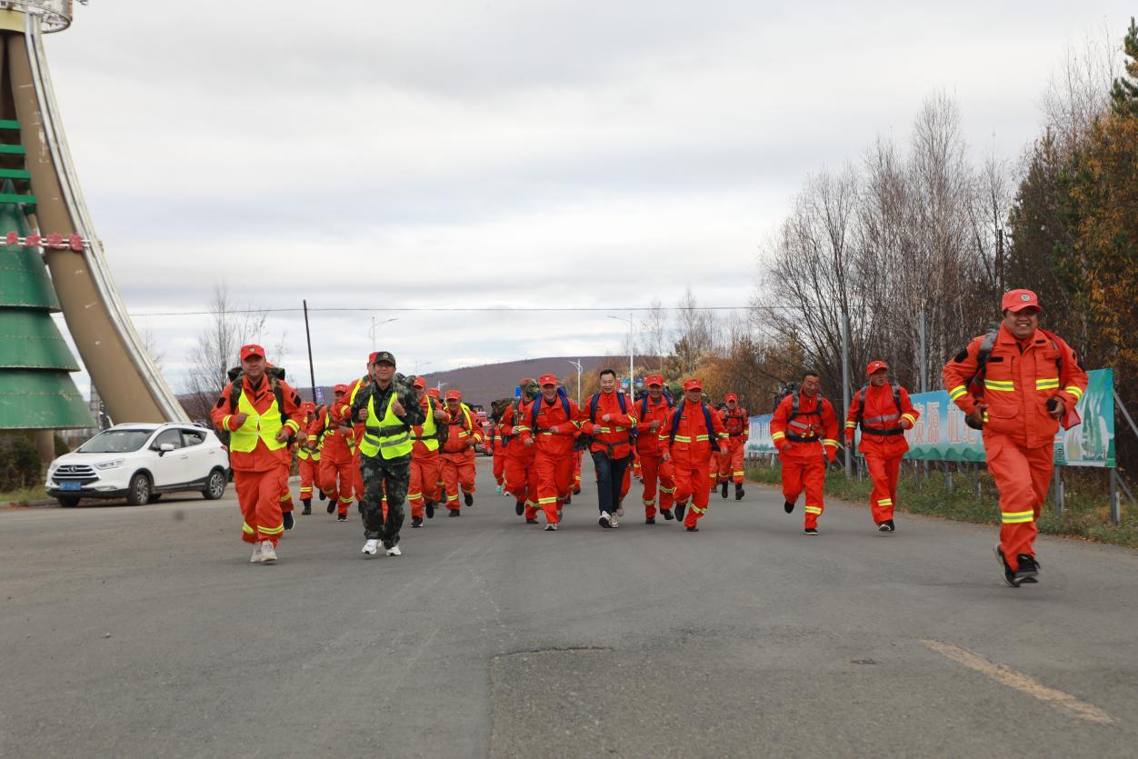 阿木爾林業(yè)局撲火專業(yè)隊(duì)員在進(jìn)行負(fù)重跑比賽(王力 攝)