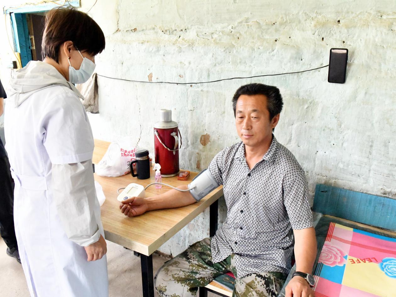 醫護人員在瞭望塔為職工體檢(張銘煊 攝)