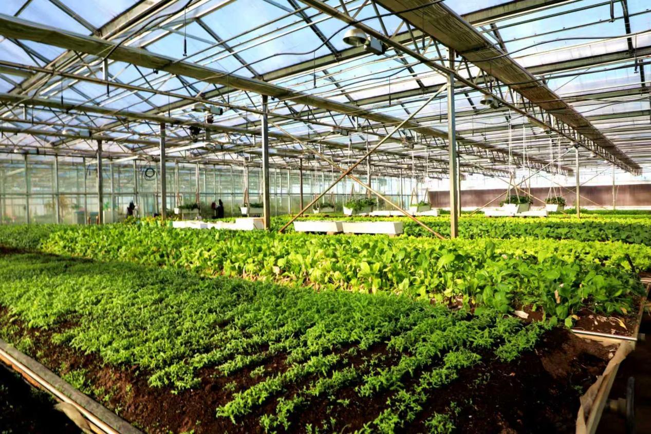 阿木爾林業局中心苗圃利用藍莓園智能連棟溫室種植的反季節蔬菜(王力 攝)