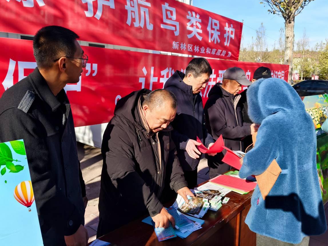 “大家看這本《鳥類保護法律常識》,這是中華秋沙鴨,它是國家一級重點保護野生動物,近些年全國有不少人因誤捕被追責(zé)。”活動現(xiàn)場,工作人員以“法治+科普”為核心搭建宣傳陣地,懸掛“聚合法治資源,護航鳥類保護”“讓我們依法愛鳥護鳥,共建美好家園”等主題橫幅,設(shè)立鳥類保護知識展示宣傳牌,向過往群眾發(fā)放《鳥類保護法律常識》《常見鳥類識別手冊》等材料,并結(jié)合實際案例,詳細解讀重點保護鳥類的相關(guān)法律法規(guī),闡明轄區(qū)內(nèi)各種重點保護鳥類在生態(tài)系統(tǒng)中的重要作用,以及非法捕獵、傷害重點保護鳥類需承擔(dān)的法律責(zé)任,引導(dǎo)群眾樹立“保護鳥類就是保護生態(tài)環(huán)境”的法治觀念與責(zé)任意識。